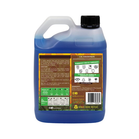 2.5L Dog & Cat Surface Cleaner Concentrate – Pet-Safe Enzyme Stain Remover & Odour Eliminator (Makes 100 Bottles)