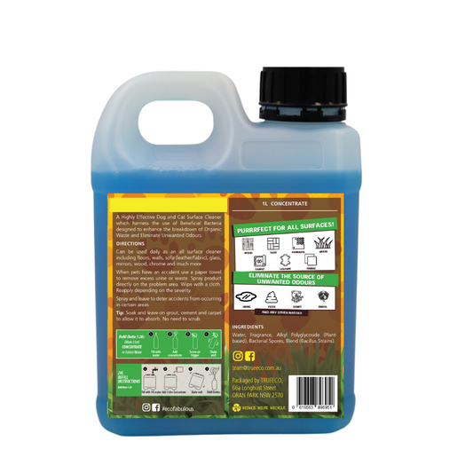 1L Dog & Cat Surface Cleaner Concentrate – Pet-Safe Enzyme Stain Remover & Odour Eliminator (Makes 40 Bottles)